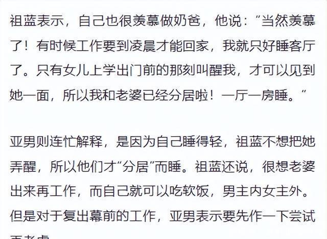 "一厅一房睡"的婚姻实况,爆料狂魔停不下来 王祖蓝在综艺节目中的爆料可不止女儿的"男朋友"这一件事。 多年来,他似乎已经养成了在公开场合分享家庭隐私的习惯。